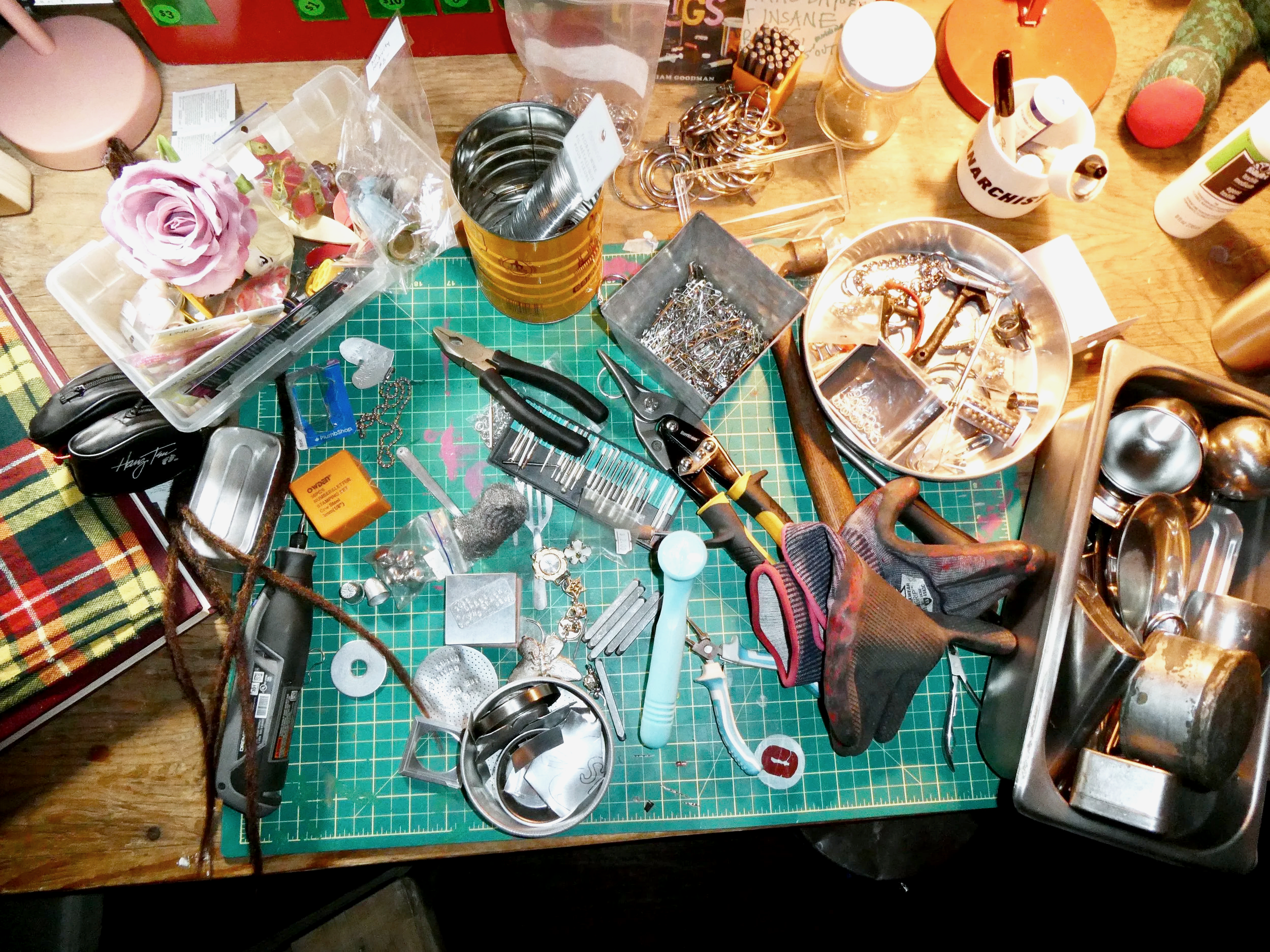 Immortal Fabrics is a daily material practice centered on looking, collecting, sorting, storing, and applying post-consumer materials. Garments are sourced through local surplus, secondhand circulation, and peer-to-peer exchange, gathered by foot or public transit and worked on by hand.